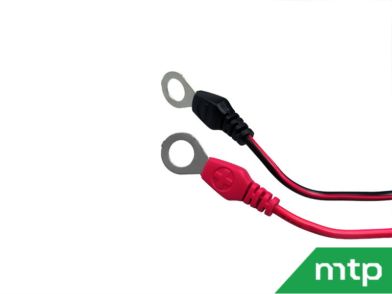 - Met M8 oogbout om vast te monteren op de accu (om accu’s te laden die slecht toegankelijk zijn).